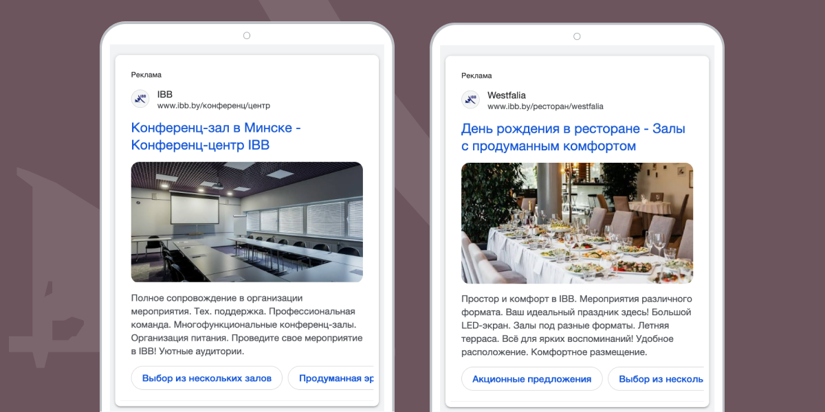 ΠΡ ΡΠΎΠ±ΡΠ°Π»ΠΈ ΡΠ΅Π»Π΅Π²Π°Π½ΡΠ½ΠΎΠ΅ ΡΠ΅ΠΌΠ°Π½ΡΠΈΡΠ΅ΡΠΊΠΎΠ΅ ΡΠ΄ΡΠΎ Π΄Π»Ρ ΠΊΠ°ΠΆΠ΄ΠΎΠΉ ΠΊΠ°ΠΌΠΏΠ°Π½ΠΈΠΈ, Π²ΠΊΠ»ΡΡΠ°ΡΡΠ΅Π΅ ΠΊΠ»ΡΡΠ΅Π²ΡΠ΅ Π·Π°ΠΏΡΠΎΡΡ, ΡΠ²ΡΠ·Π°Π½Π½ΡΠ΅ Ρ ΠΏΠΎΠΈΡΠΊΠΎΠΌ ΡΠ΅ΡΡΠΎΡΠ°Π½ΠΎΠ², Π°ΡΠ΅Π½Π΄ΠΎΠΉ Π·Π°Π»ΠΎΠ² Π΄Π»Ρ ΠΏΡΠΎΠ²Π΅Π΄Π΅Π½ΠΈΡ ΡΠ²Π°Π΄Π΅Π±, Π΄Π½Π΅ΠΉ ΡΠΎΠΆΠ΄Π΅Π½ΠΈΠΉ, ΠΊΠΎΡΠΏΠΎΡΠ°ΡΠΈΠ²ΠΎΠ², Π° ΡΠ°ΠΊΠΆΠ΅ ΠΏΠΎΠΈΡΠΊΠΎΠΌ ΠΊΠΎΠ½ΡΠ΅ΡΠ΅Π½Ρ-Π·Π°Π»ΠΎΠ², ΠΏΠ΅ΡΠ΅Π³ΠΎΠ²ΠΎΡΠ½ΡΡ ΠΊΠΎΠΌΠ½Π°Ρ ΠΈ ΠΏΠΎΠΌΠ΅ΡΠ΅Π½ΠΈΠΉ Π΄Π»Ρ Π΄Π΅Π»ΠΎΠ²ΡΡ ΠΌΠ΅ΡΠΎΠΏΡΠΈΡΡΠΈΠΉ. Π ΠΎΠ±ΡΡΠ²Π»Π΅Π½ΠΈΡΡ Π΄Π΅Π»Π°Π»ΠΈ Π°ΠΊΡΠ΅Π½Ρ Π½Π° ΠΏΡΠ΅ΠΈΠΌΡΡΠ΅ΡΡΠ²Π° ΠΏΠ»ΠΎΡΠ°Π΄ΠΊΠΈ: ΡΠ΄ΠΎΠ±Π½ΠΎΠ΅ ΡΠ°ΡΠΏΠΎΠ»ΠΎΠΆΠ΅Π½ΠΈΠ΅, ΠΏΡΠΎΡΡΠΎΡΠ½ΡΠ΅ Π·Π°Π»Ρ, ΠΎΠΏΡΡΠ½Π°Ρ ΠΊΠΎΠΌΠ°Π½Π΄Π°.