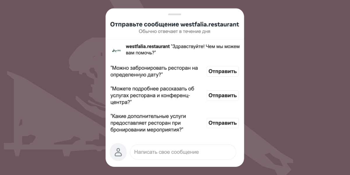 - ΠΠΎΠ»Π΅Π΅ ΠΏΡΠΎΡΡΠΎΠΉ ΠΈ ΠΏΠΎΠ½ΡΡΠ½ΡΠΉ ΠΏΡΡΡ ΠΏΠΎΠ»ΡΠ·ΠΎΠ²Π°ΡΠ΅Π»Ρ: Π²ΠΌΠ΅ΡΡΠΎ ΠΏΠ΅ΡΠ΅Ρ ΠΎΠ΄Π° Π½Π° ΡΠ°ΠΉΡ ΡΠ΅Π»ΠΎΠ²Π΅ΠΊ ΡΡΠ°Π·Ρ Π½Π°ΡΠΈΠ½Π°Π΅Ρ Π΄ΠΈΠ°Π»ΠΎΠ³ Π² Direct, ΡΡΠΎ ΡΠ½ΠΈΠΆΠ°Π΅Ρ Π±Π°ΡΡΠ΅Ρ Π½Π° Π²Ρ ΠΎΠ΄Π΅.